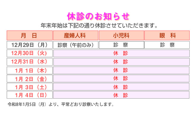 料金について詳しくは、目次の「診療科目」から「産科」のページ、又は事務所受付